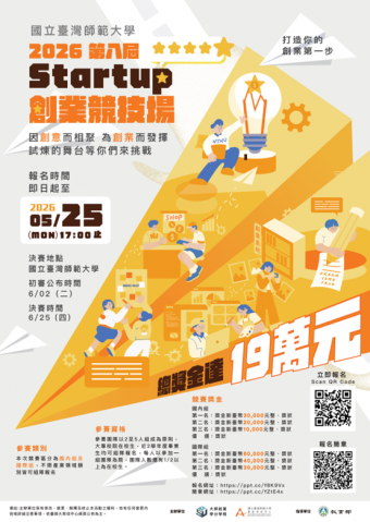 - 【函轉】國立臺灣師範大學2026年第八屆Startup創業競技場 2026/04/09