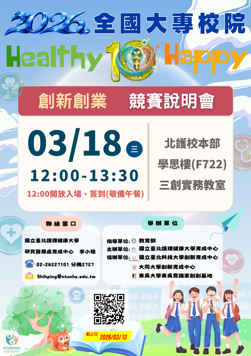 【活動報名截止】2026(第十屆)全國大專校院「Healthy x Happy」創新創業競賽說明會