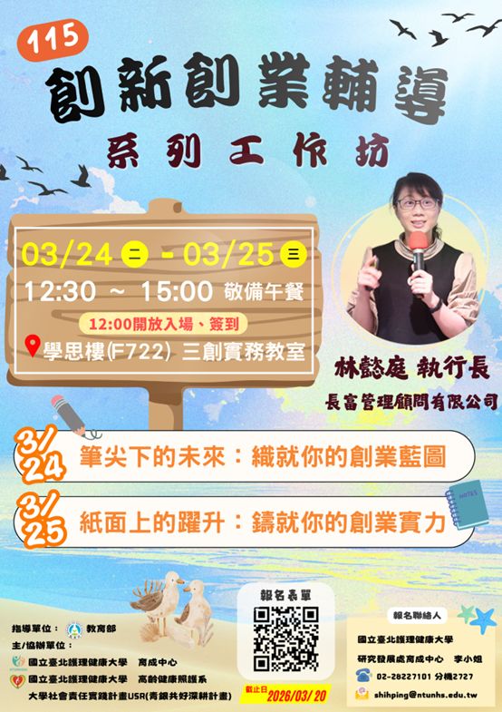 115年創新創業輔導系列工作坊來囉~~趕快來報名唷!