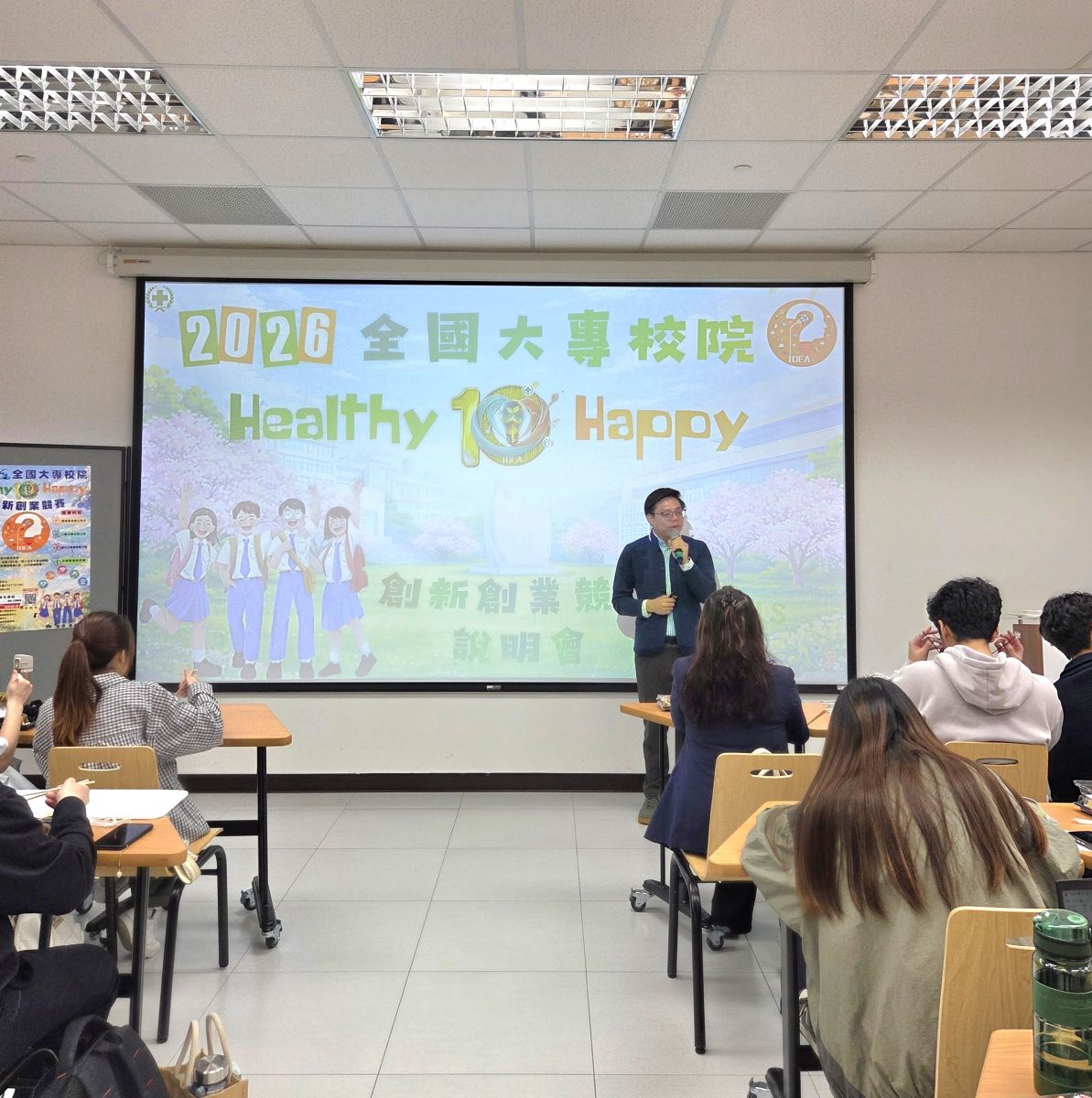 2026(第十屆)全國大專校院「Healthy x Happy」創新創業競賽說明會於學思樓7樓F722三創實務教室順利舉行。