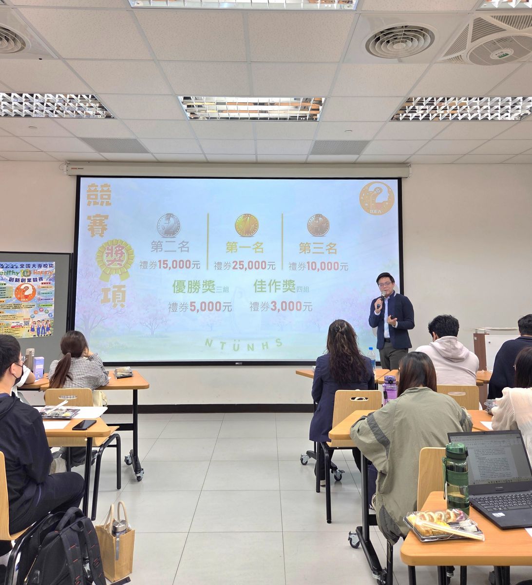 為協助參賽者提升競賽實力,說明會現場同步推廣3月【創業計劃書撰寫】與4月【創業簡報製作】育成中心特別邀請業界專業講師蒞臨授課辦理「創新創業輔導系列工作坊」,為即將舉辦的進行活動推廣,透過專業指導與實作演練,幫助學員強化提案能力,為競賽及未來職涯發展奠定堅實基礎。