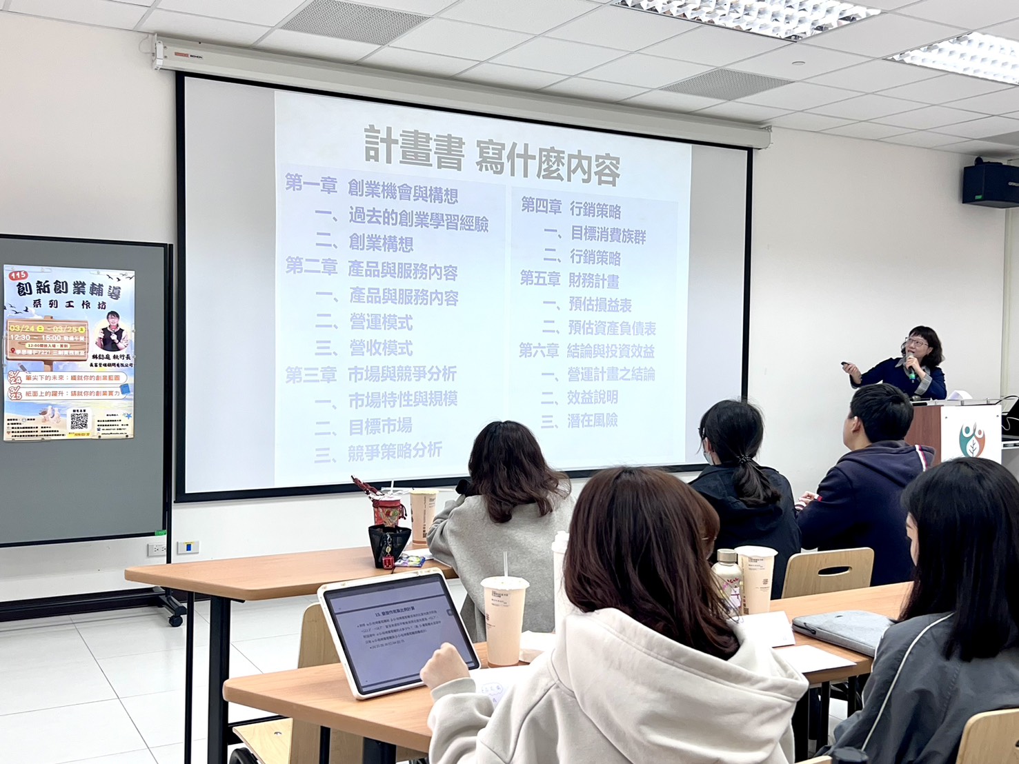 擔任主講,以「筆尖下的未來 : 織就你的創業藍圖」為主題,深入淺出地引導學員認識創業計畫書