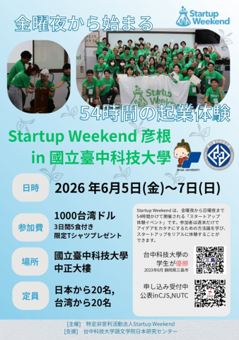- 【函轉】國立臺中科技大學舉辦「Startup Weekend 彦根 in 國立臺中科技大學」 2026/04/24