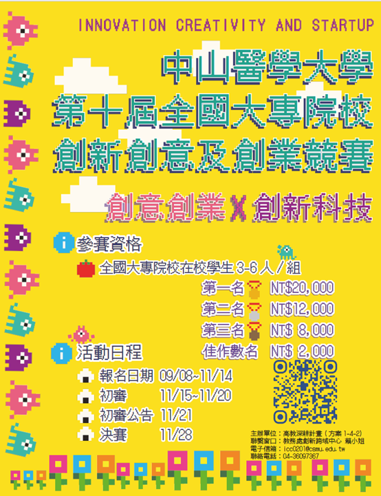【函轉】中山醫學大學辦理第十屆「全國大專院校創新、創意及創業競賽」