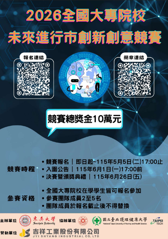 【函轉】東吳大學2026第三屆全國大專院校未來進行市創新創意競賽
