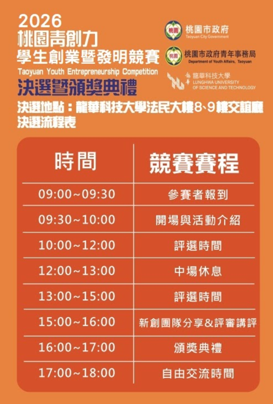 (一)競賽名稱:2026桃園青創力學生創業暨發明競賽。