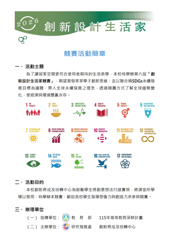 【函轉】亞東科技大學2026創客競賽-第六屆創新設計生活家競賽